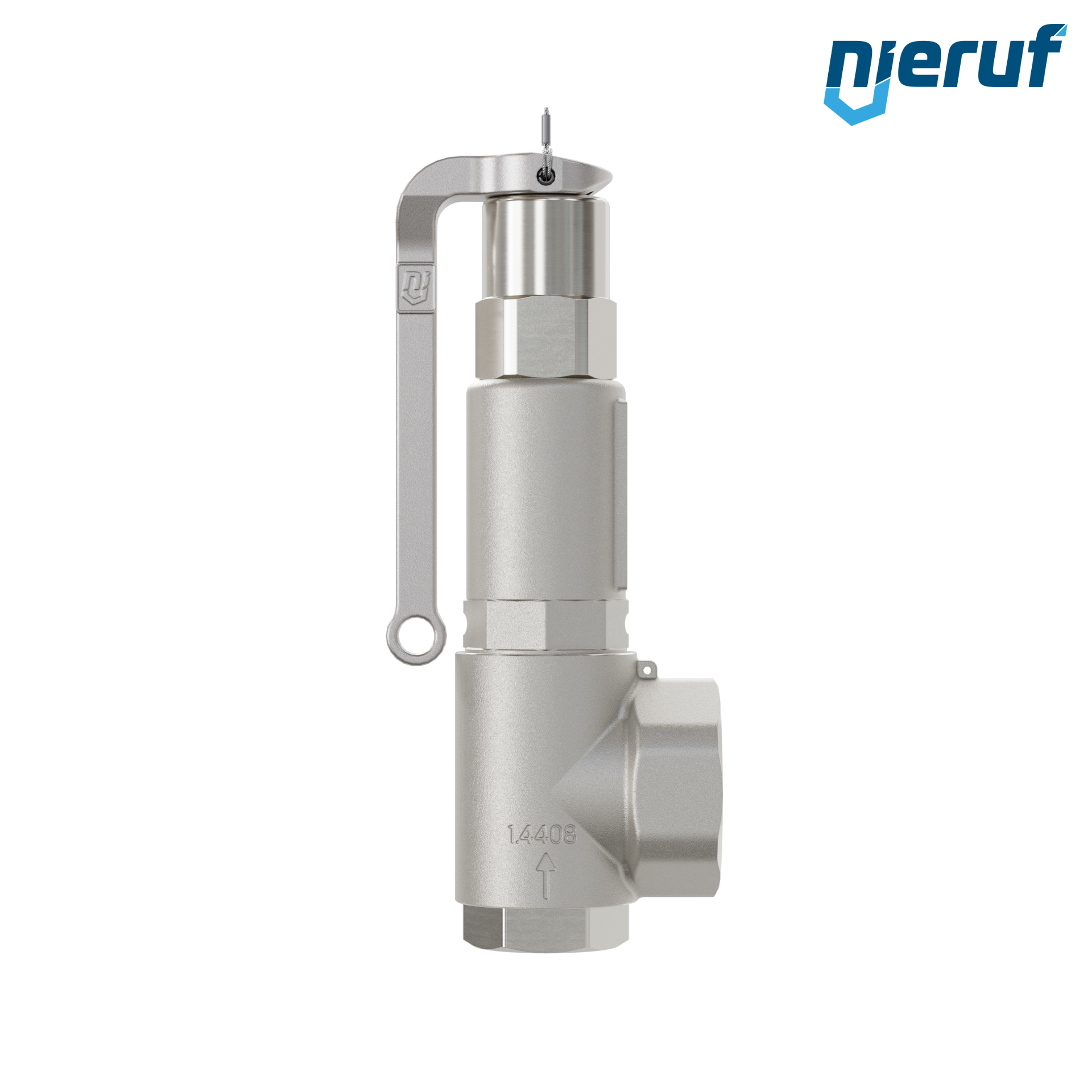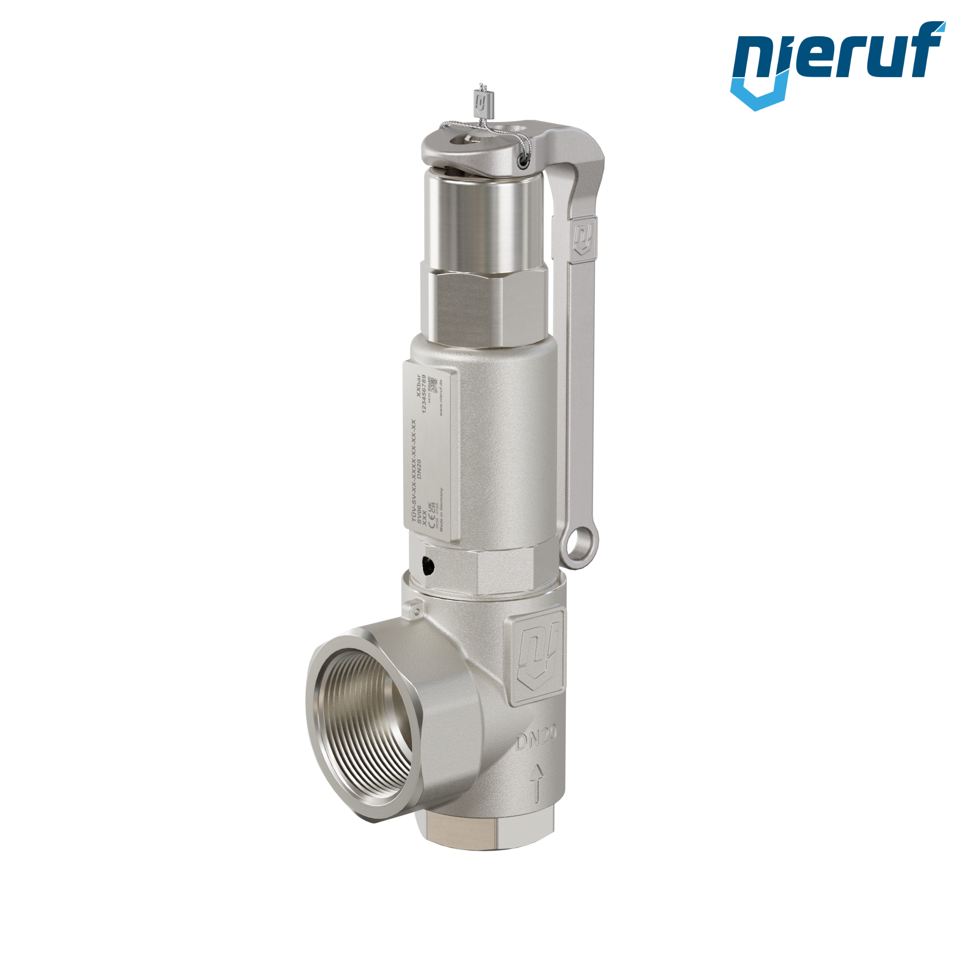 angle-type-safety valve for liquid media NBR 3/4" x 1 1/4" fm stainless steel Typ SV06 with Female screw threaded BSP-P with lever and with bellows