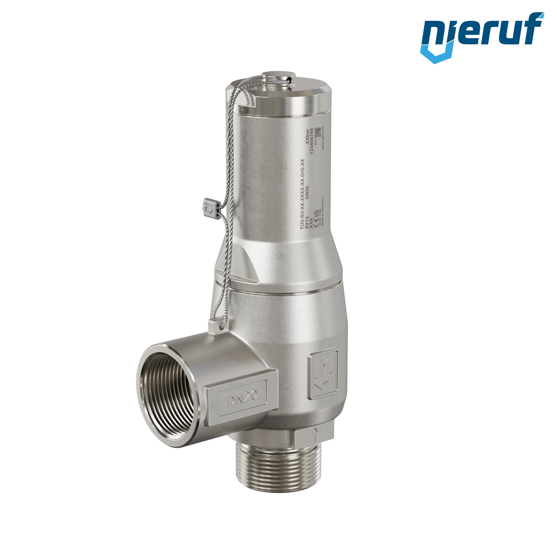 safety valve 3/4" m NPT x 3/4" fm SV13 for liquid and gaseous media made of stainless steel seal PTFE pressure 0,5 - 25,0 bar without lever