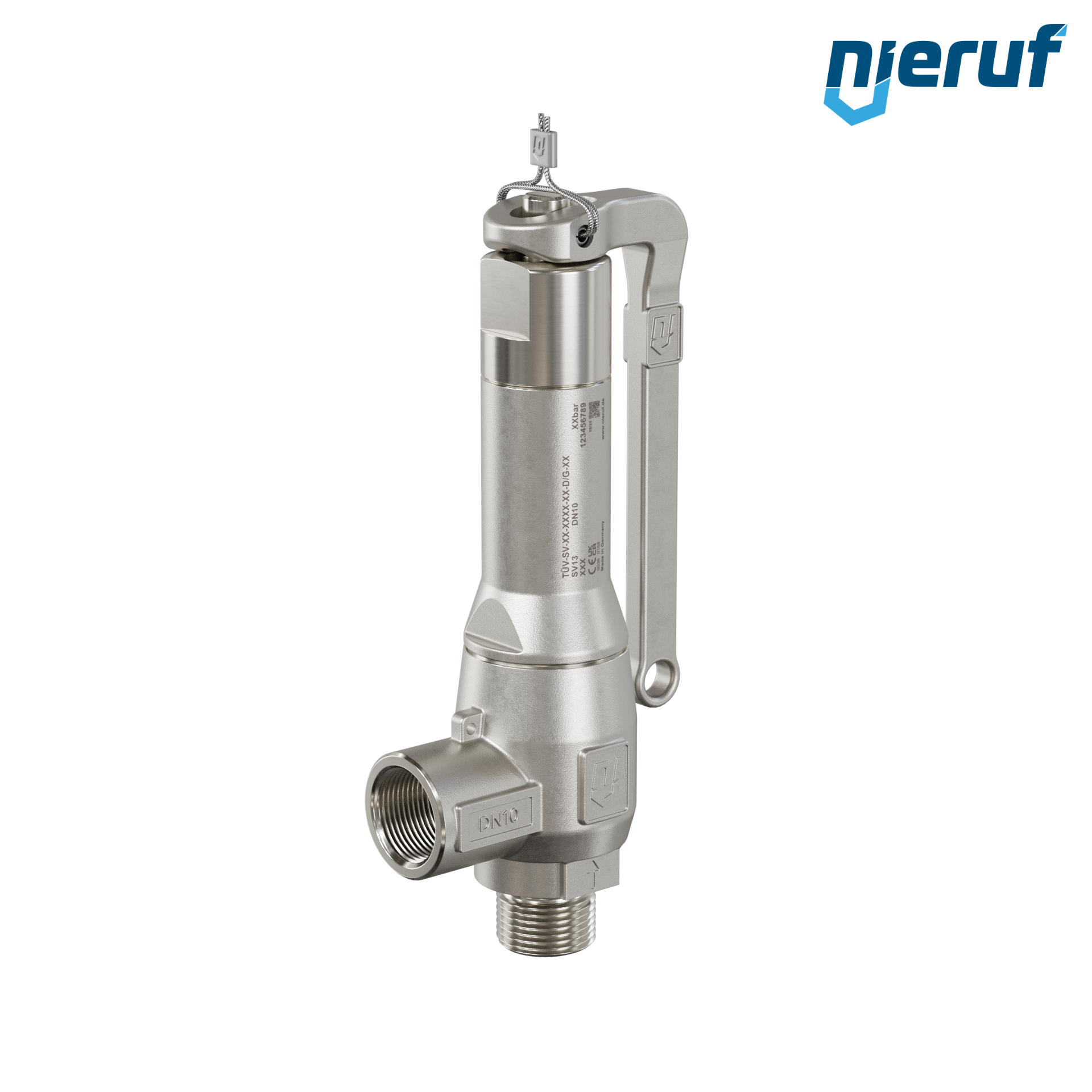 safety valve 3/8" m x 3/8" fm SV13 for liquid and gaseous media made of stainless steel seal FKM pressure 0,2 - 25,0 bar with lever