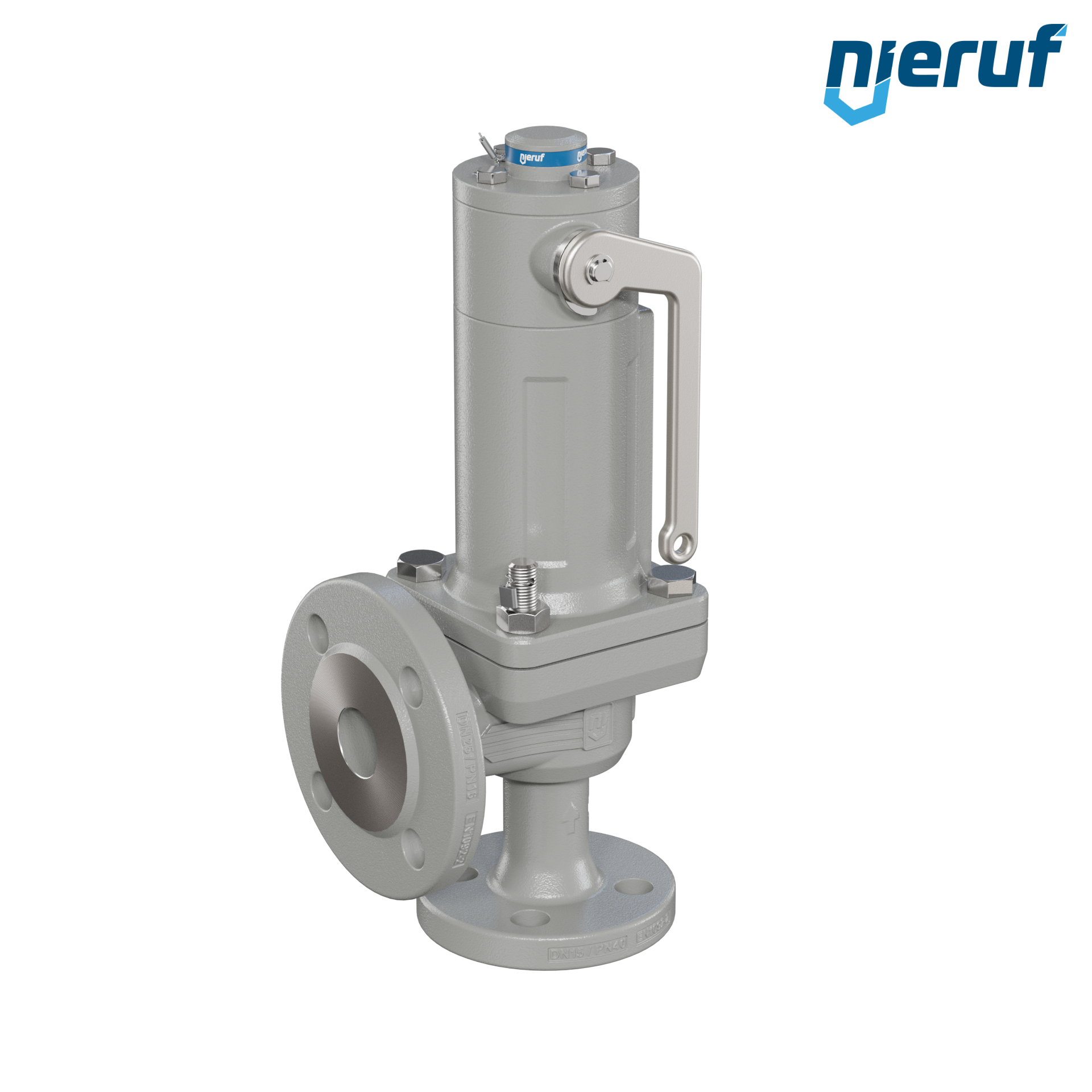 flange-safety valve DN15/DN25 SF06, gastight bonnet metal, with lifting device lever