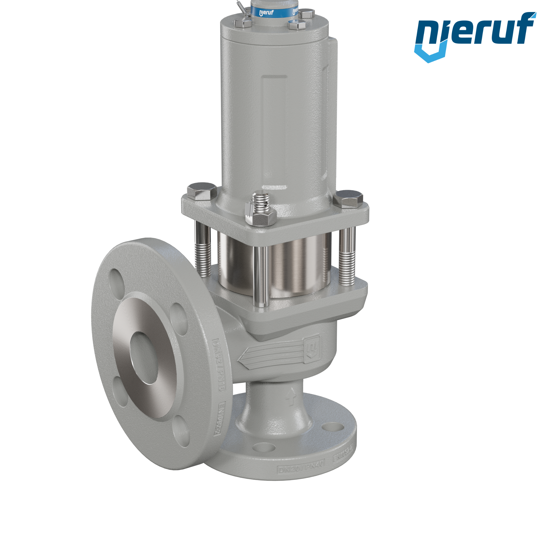 flange-safety valve gastight DN20/DN32 SF06 for liquid and gaseous media made of Spheriodal graphite cast iron 5.1303 seal FKM set pressure 0,4 - 40,0 bar without lifting device with bellow