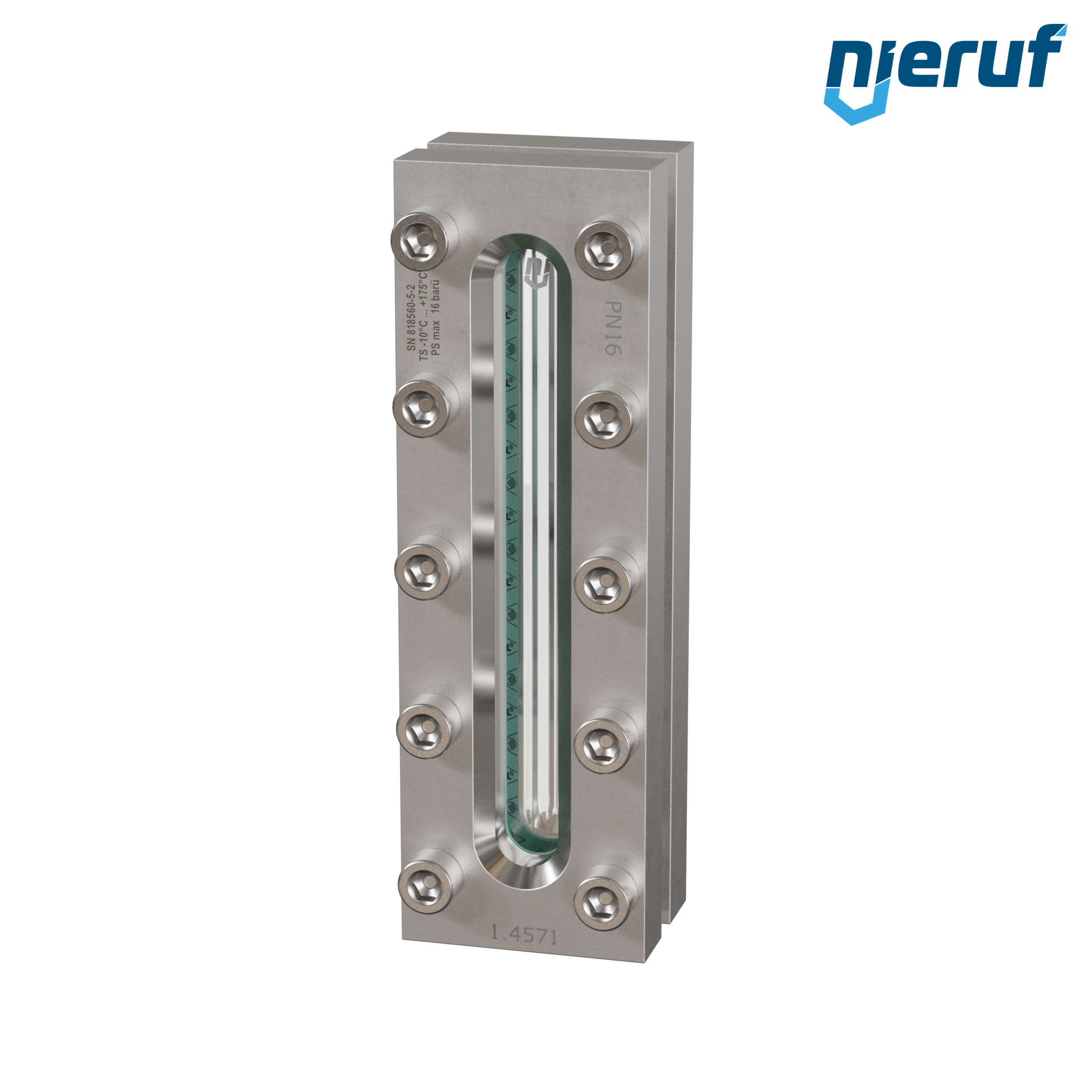 Sight glass fitting L=220mm BS03 stainless steel 1.4571 borosilicate glass, reflex 16bar