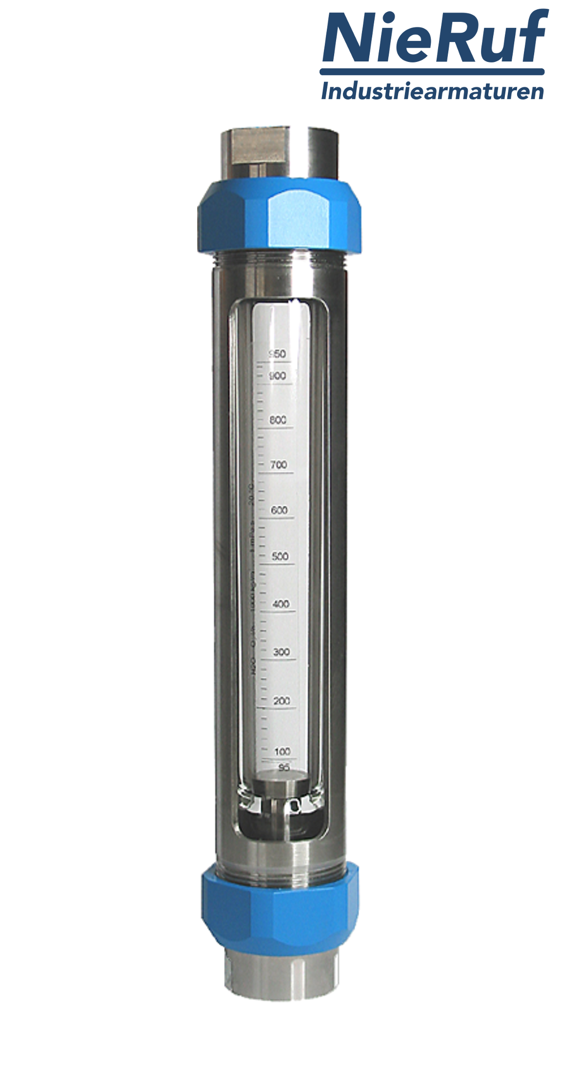 Variable area flowmeter stainless steel + borosilicate 1/2" inch 160.0 - 1600 l/h air FKM