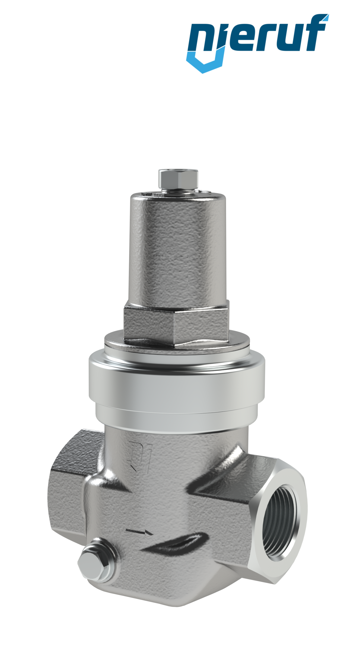 High quality pressure reducing valve made of stainless steel for steam. This version has a NPT thread connectionan and is piston-controlled, spring-loaded and inlet pressure relieved.
