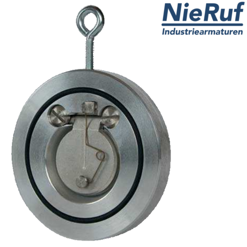 swing check valve with spring DN40 ASME B16.5 / ANSI 150 made of stainless steel A351 CF8M seal metall for liquid and gaseous media