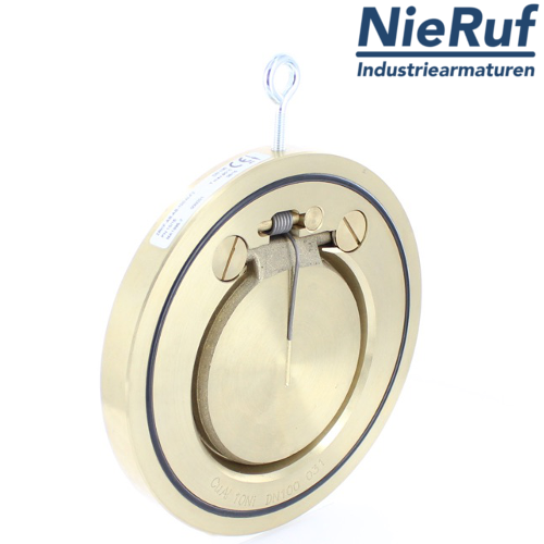 swing check valve with spring DN65 PN 10/16/25/40 DIN EN 1092-1 Form B Alu bronze 2.0975 / C958 seal NBR for liquid and gaseous media