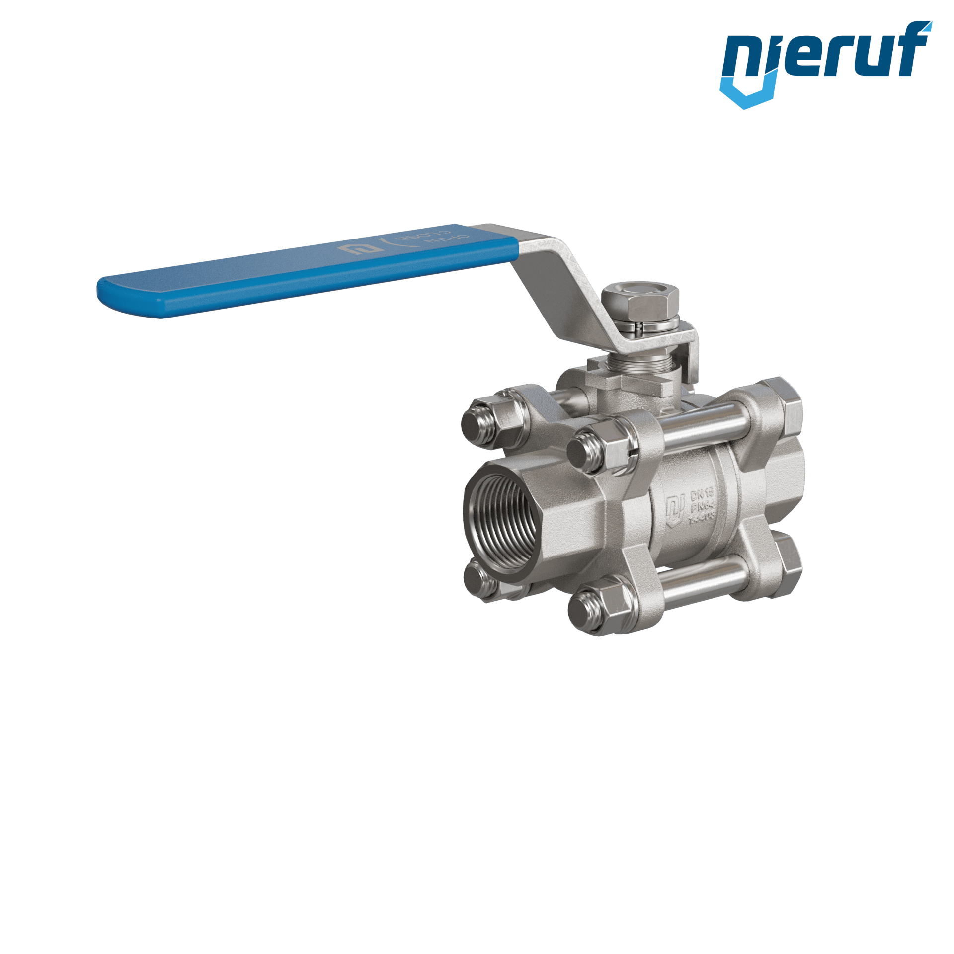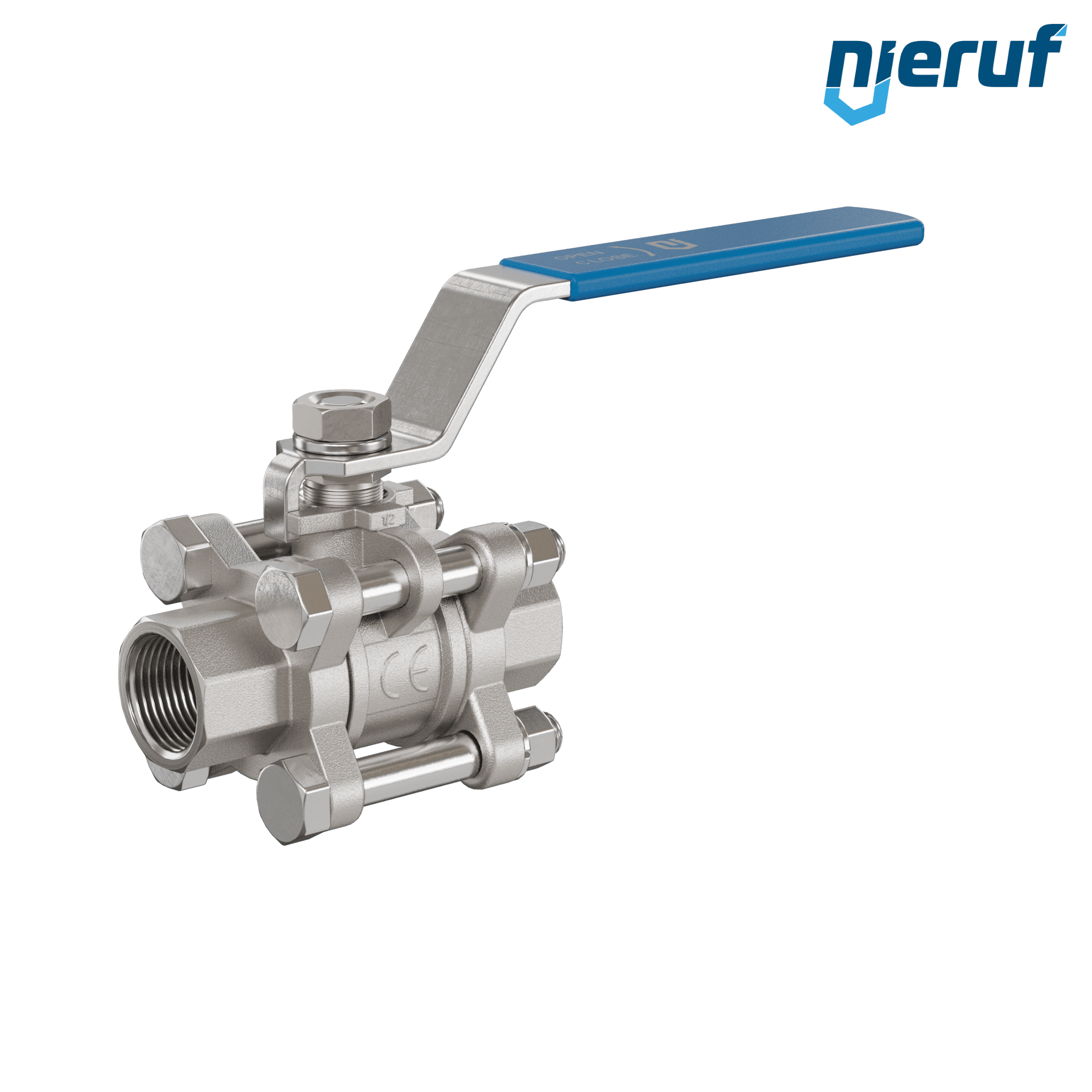 This high quality ball valve is made of stainless steel with adjustable stem packing and blow out proof stem design. This three-piece body valve is authorized for pressure equipment directive Cat. 0