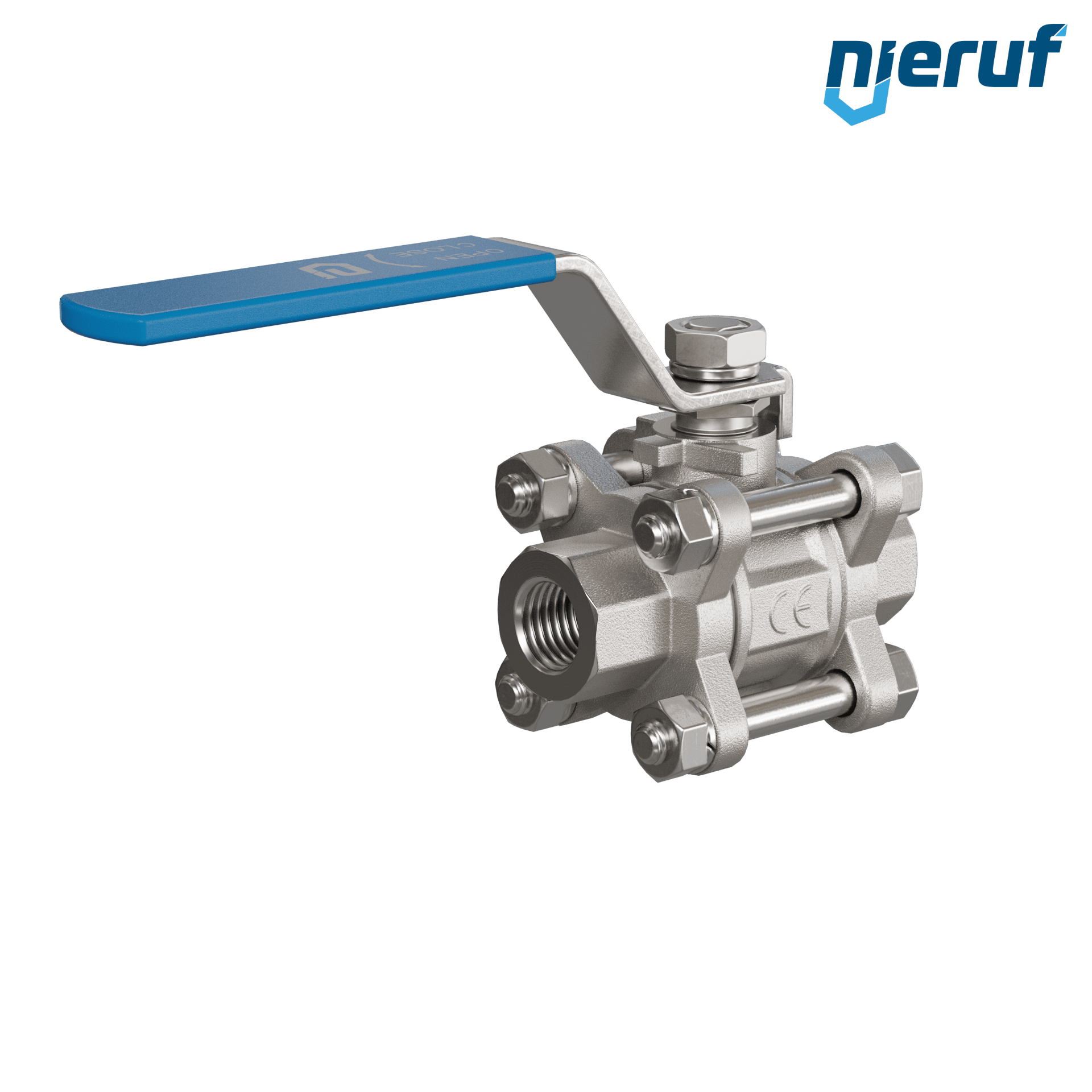 This high quality ball valve is made of stainless steel with adjustable stem packing and blow out proof stem design. This three-piece body valve is authorized for pressure equipment directive Cat. 0