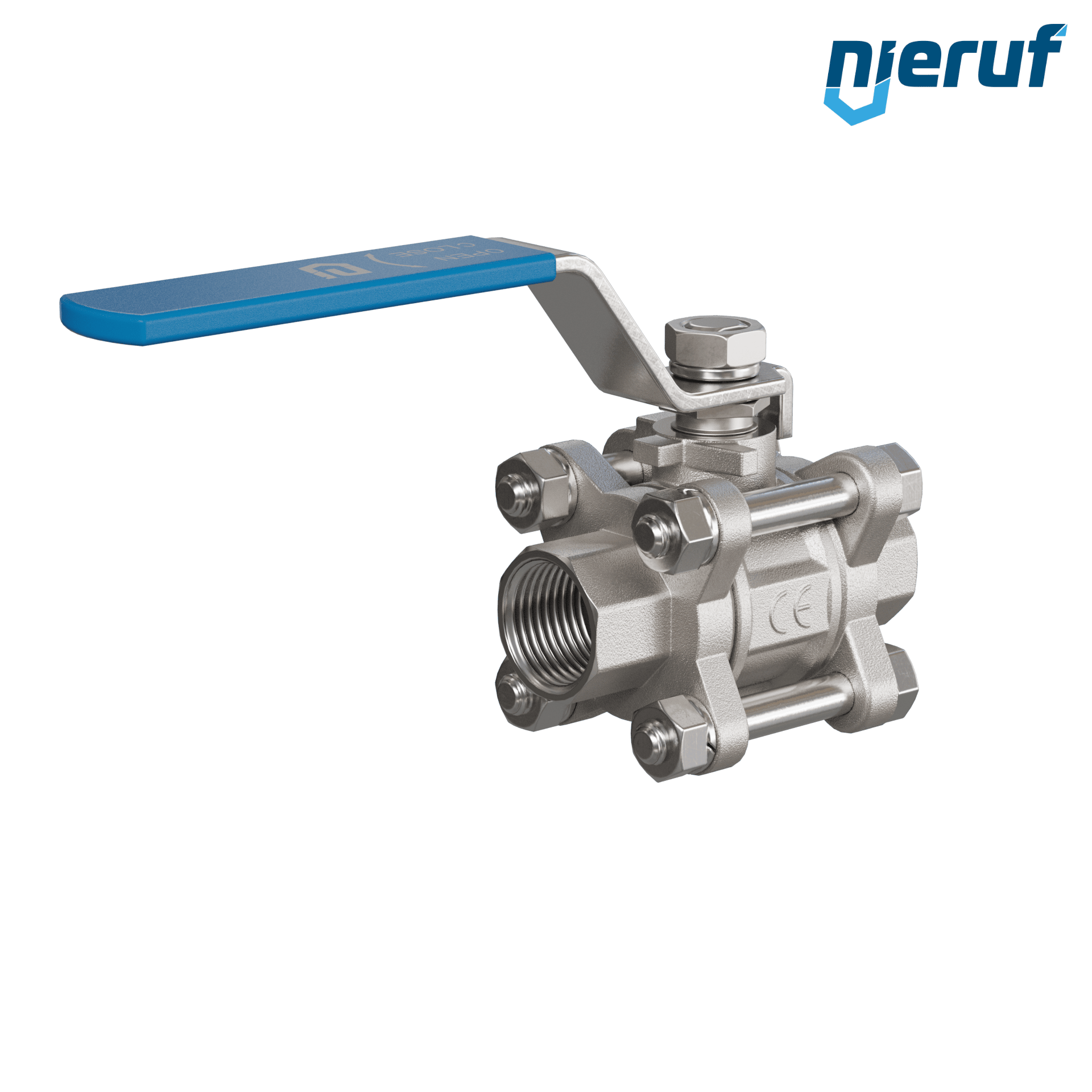 This high quality ball valve is made of stainless steel with adjustable stem packing and blow out proof stem design. This three-piece body valve is authorized for pressure equipment directive Cat. 0