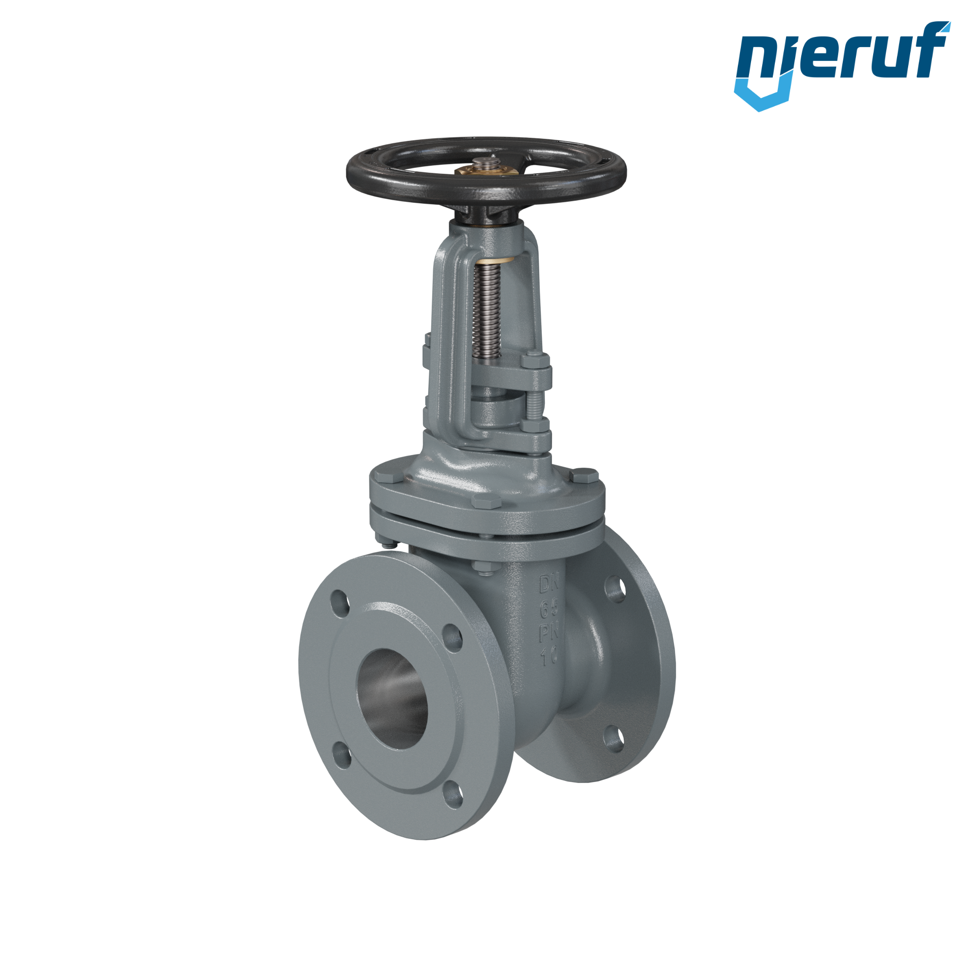 | Product feature | wedge gate valve (flat form) made of cast iron in straightway form with flange connection and rising stem as well as non-rising handwheel. |