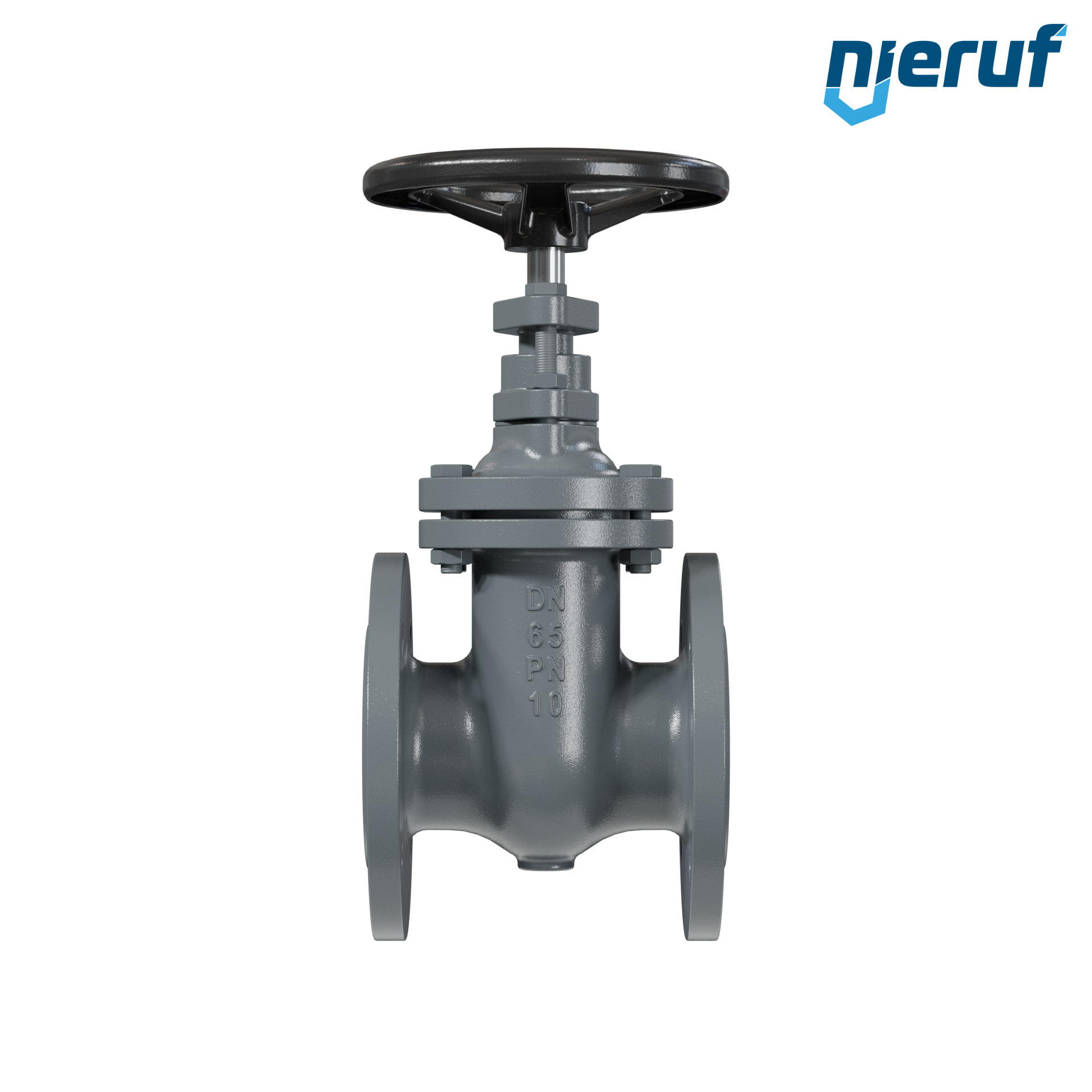 | Product feature | wedge gate valve (flat form) made of cast iron in straightway form with flange connection and internal spindle as well as non-rising handwheel. |